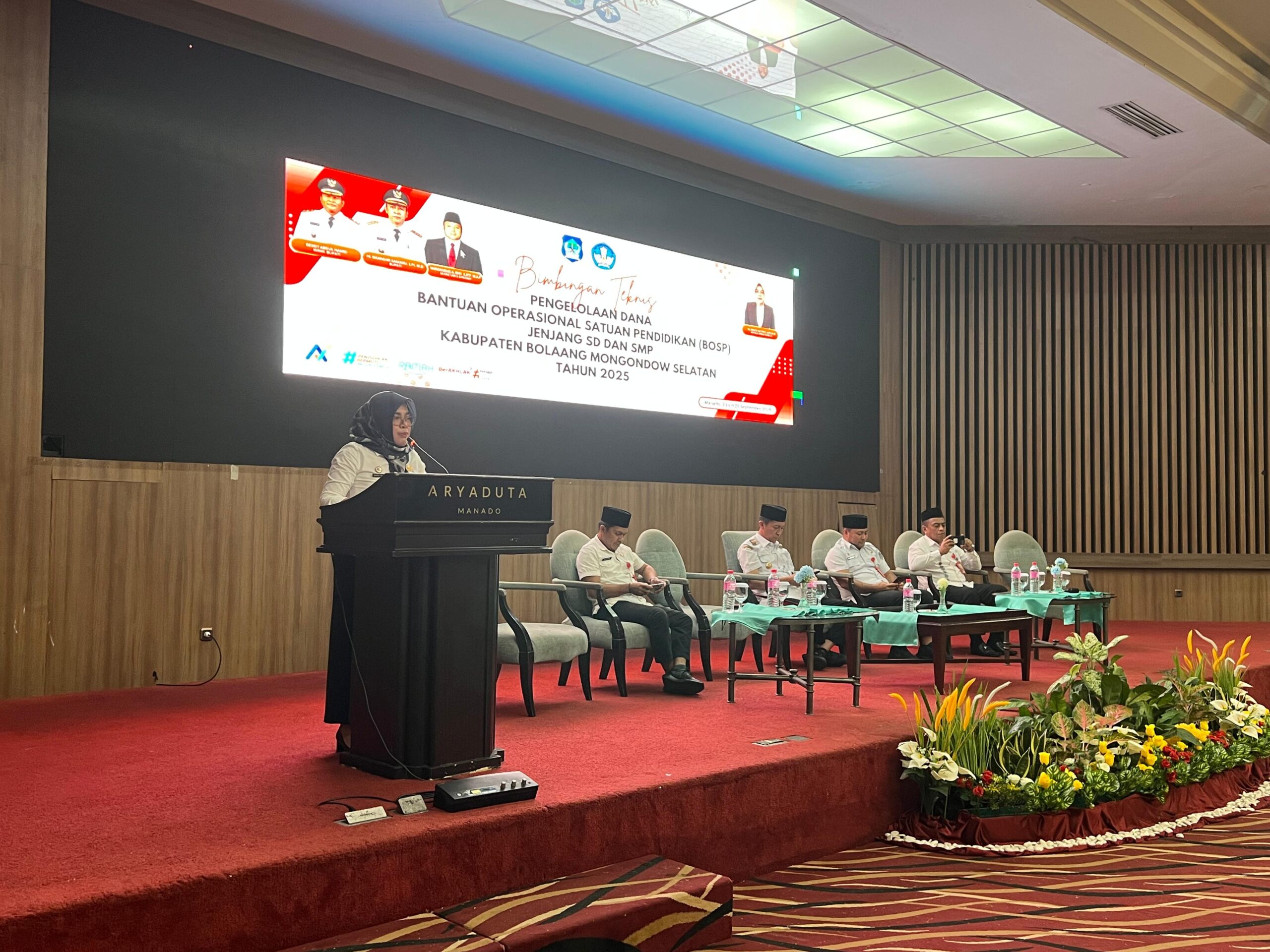 e-berita.com, Bolsel – Dinas Pendidikan dan Kebudayaan (Disdikbud) Kabupaten Bolaang Mongondow Selatan (Bolsel) menggelar Bimbingan Teknis (Bimtek) Pengelolaan Dana BOSP Jenjang SD dan SMP Tahun 2025, bertempat di Hotel Aryaduta Kota Manado, Rabu (24/09/2025)