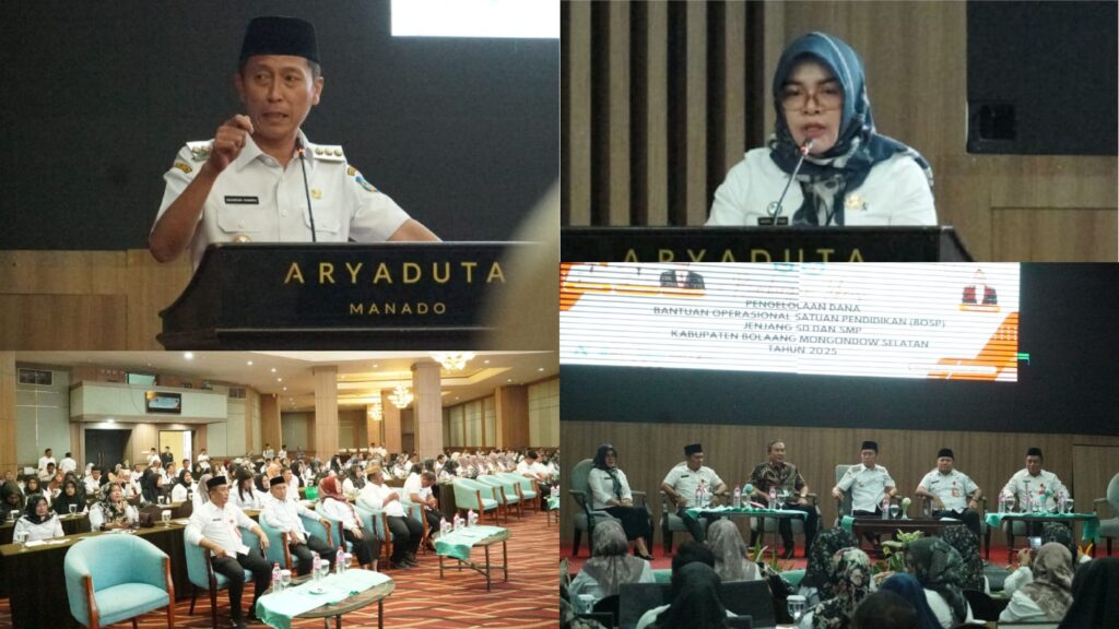 e-berita.com, Bolsel – Dinas Pendidikan dan Kebudayaan (Disdikbud) Kabupaten Bolaang Mongondow Selatan (Bolsel) menggelar Bimbingan Teknis (Bimtek) Pengelolaan Dana BOSP Jenjang SD dan SMP Tahun 2025, bertempat di Hotel Aryaduta Kota Manado, Rabu (24/09/2025)