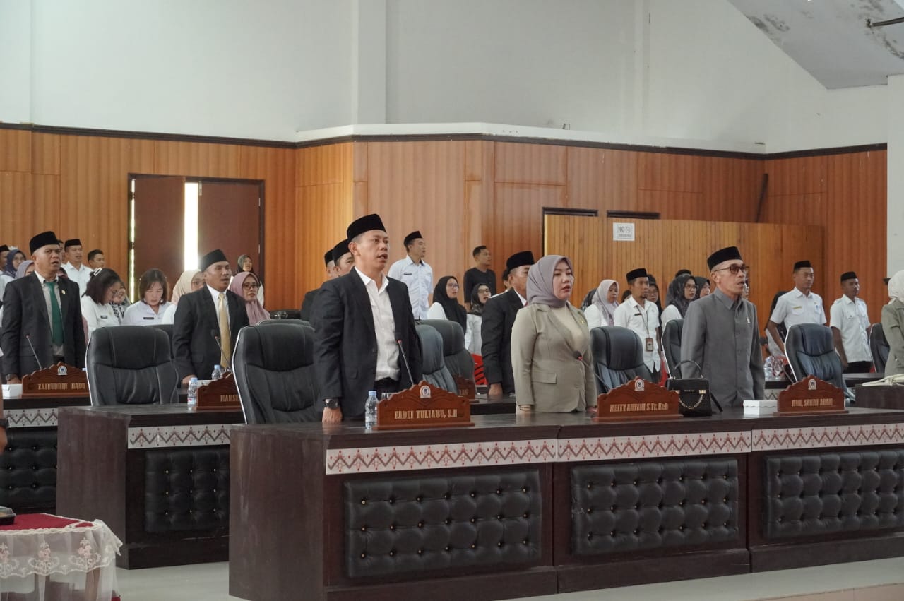 Rapat paripurna ini dipimpin oleh, Ketua DPRD, Ir. Arifin Olii bersama kedua Wakil Ketua, dan dihadiri Bupati, H. Iskandar Kamaru, S.Pt, M.Si, bertempat di ruang Paripurna DPRD Bolsel, Rabu (01/10/2025)
