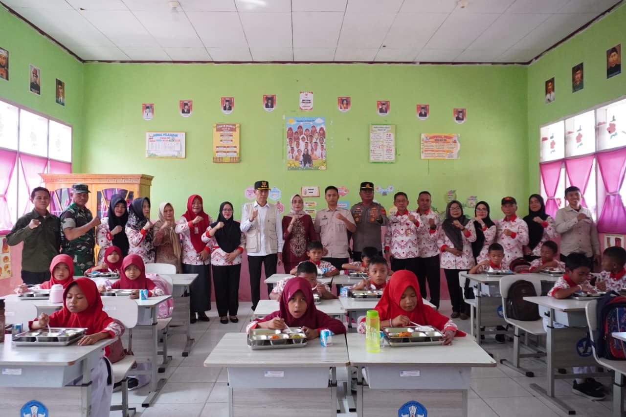 Pada kesempatan ini Bupati menyampaikan bahwa ini merupakan perdana MBG di kab.bolsel dan Alhamdulillah kata bupati antusias para siswa terhadap makanan bergizi gratis luar biasa.