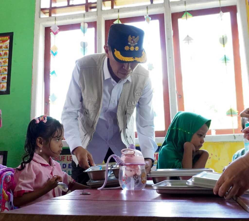 e-berita.com, Bolsel – Bupati Bolaang Mongondow Selatan (Bolsel), H. Iskandar Kamaru, S.Pt, M.Si secara langsung meninjau proses distribusi program pemenuhan makanan bergizi gratis (MBG) di Kecamatan Posigadan pada Kamis, (02/10/2025)