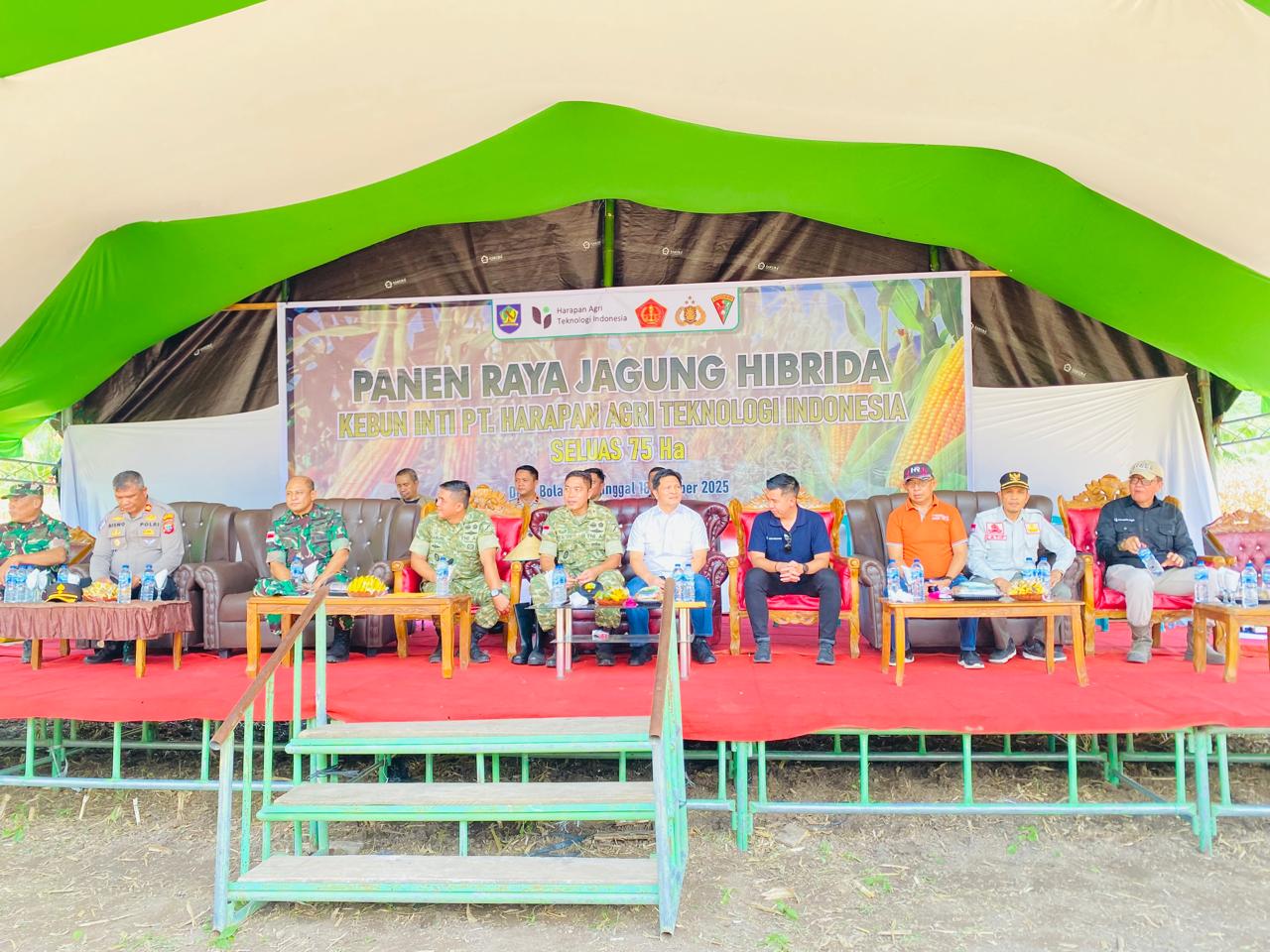 Panen raya jagung hibrida milik PT. Harapan Agri Teknologi Indonesia (HATI) itu, turut di hadiri Wakil Bupati Bolmong, Dony Lumenta, Danrem 131/Santiago Manado, Dandim 1303 Bolmong, Wakapolres Bolmong, dan jajaran Direksi PT. HATI.