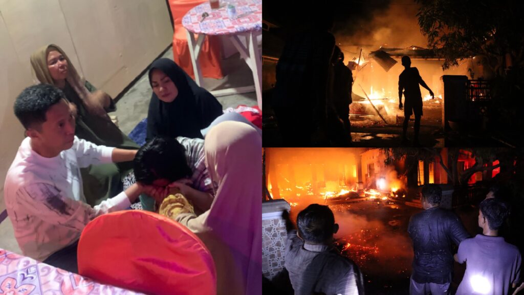 e-berita.com, Bolsel – Senin malam (20/10/2025) menjadi malam penuh kepanikan bagi warga Desa Toluaya, Kecamatan Bolaang Uki, Kabupaten Bolaang Mongondow Selatan. Di tengah langit yang mulai gelap, api tiba-tiba membumbung tinggi dari sebuah rumah yang diketahui milik Sekretaris Badan Penanggulangan Bencana Daerah (BPBD) Bolsel, Nur Gobel.