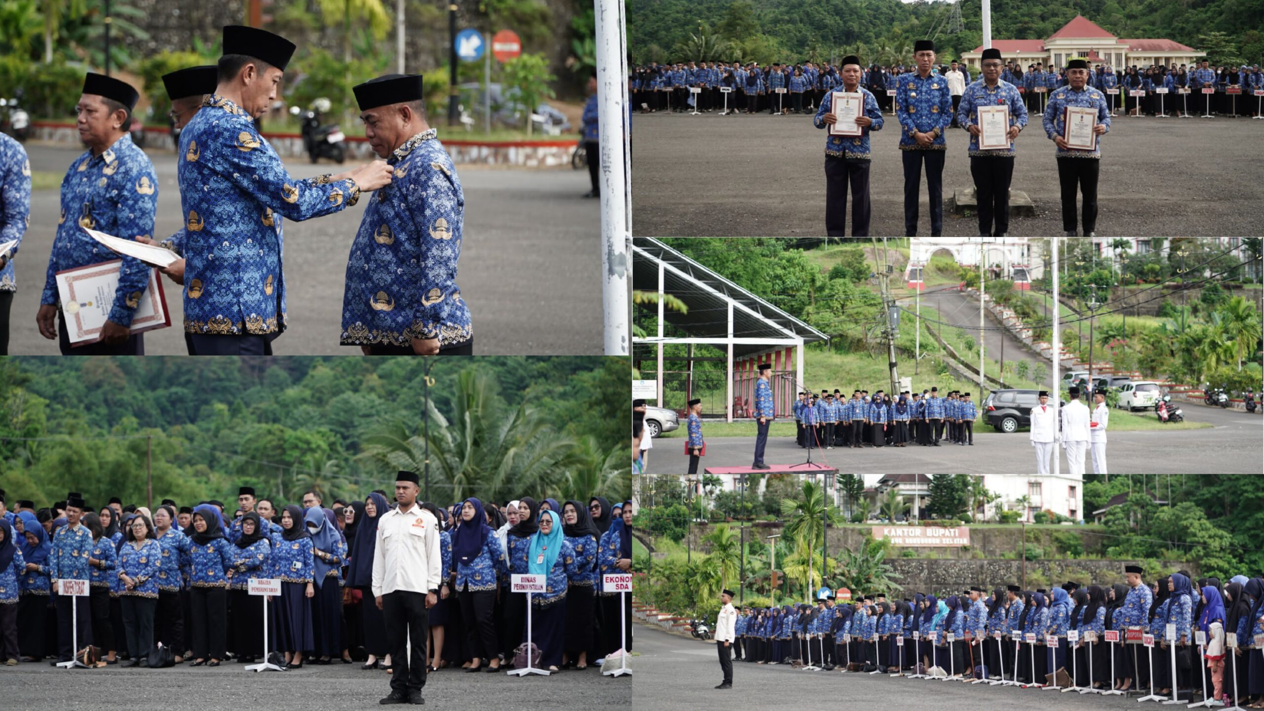 Pada kesempatan tersebut, Bupati juga menyerahkan Piagam Penghargaan Satya Lencana Karya Satya kepada aparatur sipil negara yang telah mengabdi dengan dedikasi dan loyalitas tinggi kepada pemerintah dan masyarakat.