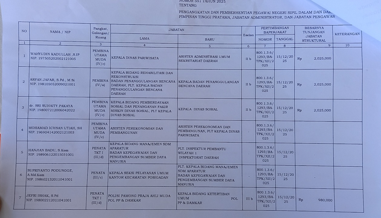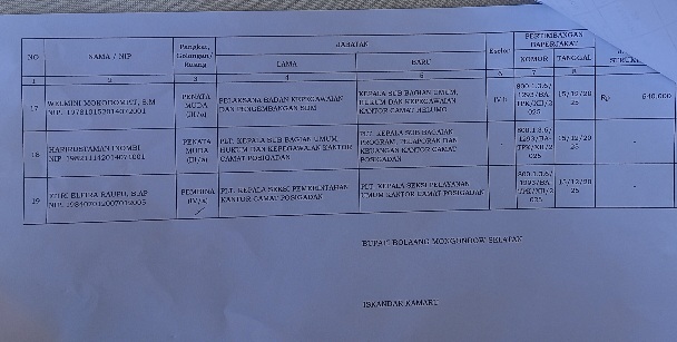 Pelantikan tersebut dilaksanakan berdasarkan Keputusan Bupati Bolaang Mongondow Selatan Nomor 551 Tahun 2025 tentang pengangkatan dan pemberhentian dalam dan dari jabatan pimpinan tinggi pratama, jabatan administrator, dan jabatan pengawas.