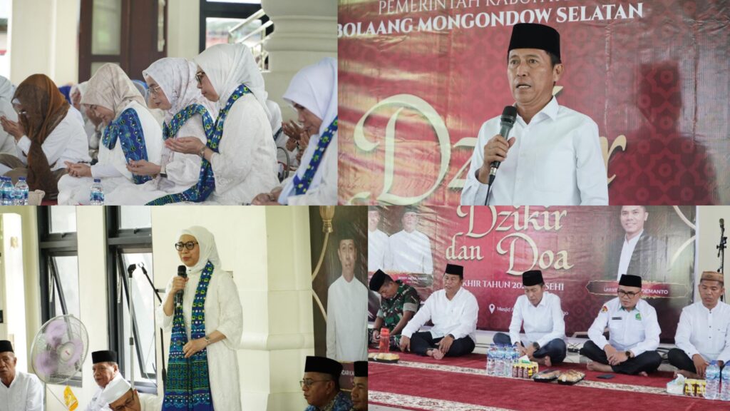 e-berita.com, Bolsel – Suasana penuh khidmat dan khusyuk mewarnai kegiatan doa dan dzikir bersama yang digelar Pemerintah Kabupaten Bolaang Mongondow Selatan (Bolsel) di jelang penghujung tahun 2025 yang dipusatkan di Masjid Kubah Merah Amirul Mukminin, kawasan Panango, Senin (22/12/2025)