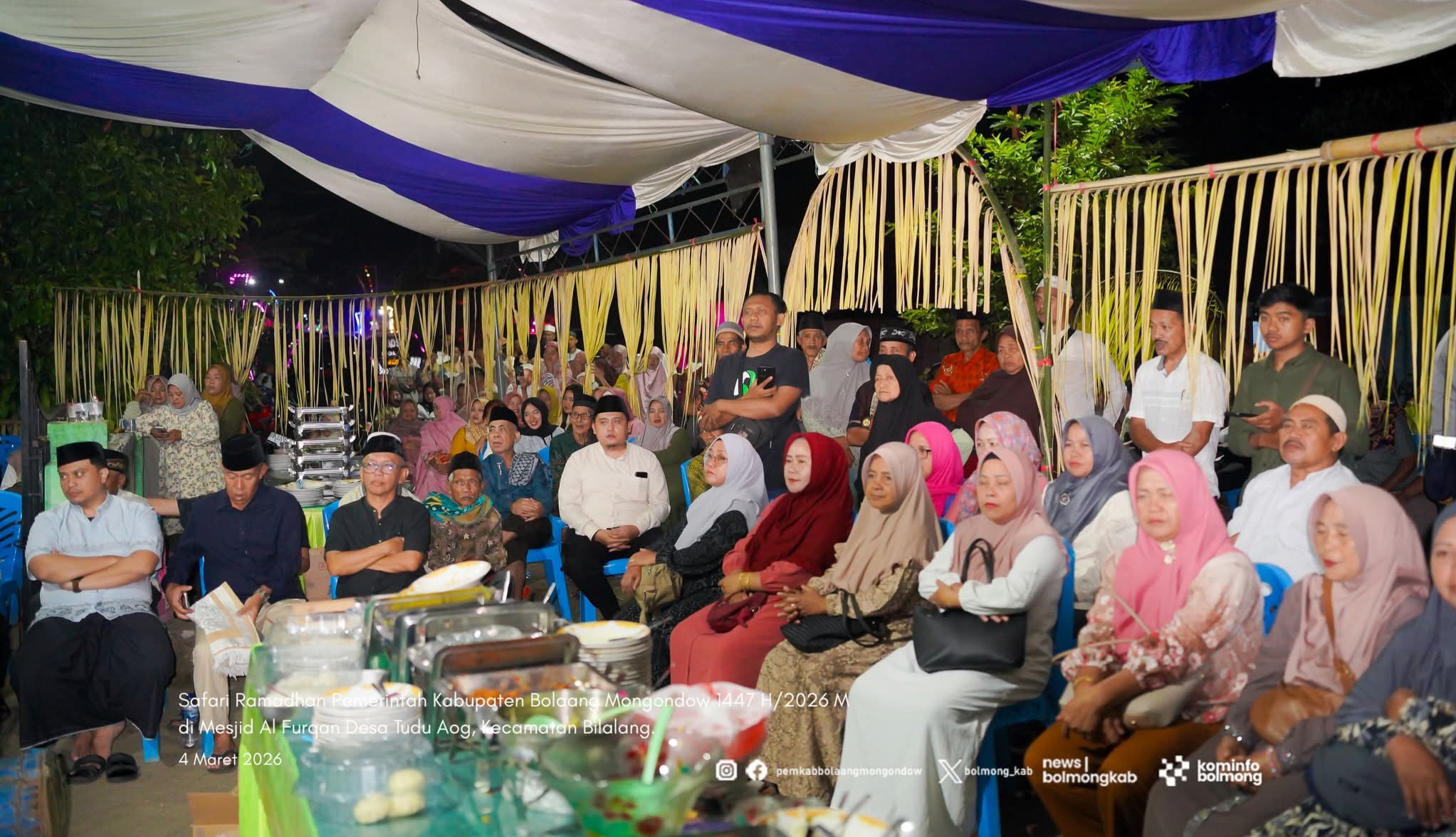 e-berita.com, Bolmong – Pemerintah Kabupaten Bolaang Mongondow (Pemkab Bolmong) terus mempererat silaturahmi dengan masyarakat melalui agenda Safari Ramadan 1447 Hijriah. Kali ini kegiatam tersebut berpusat di Masjid Al-Furqan, Desa Tudu Aog, Kecamatan Bilalang, Rabu (04/03/2026).