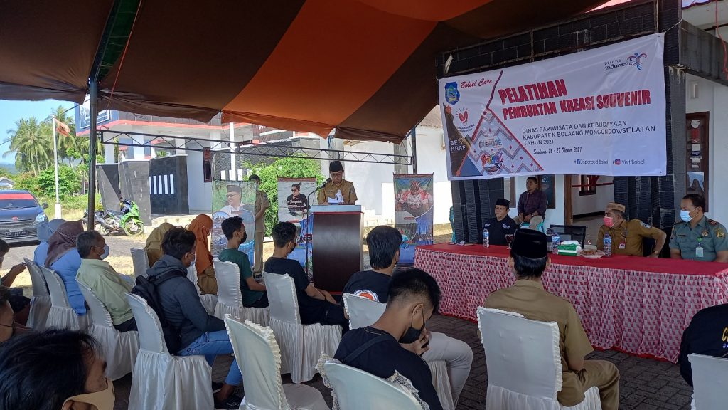 E-BERITA.COM, BOLSEL – Untuk meningkatkan kreatifitas, inovasi serta kemampuan para pelaku Usaha Mikro Kecil Menengah (UMKM) pembuatan Souvenir, Pemkab Bolsel, melalui Disparbud mengelar pelatihan pembuatan kreasi Souvenir, bertempat di Dive Center Bolsel, Desa Sondana, Selasa (26/10/2021).
