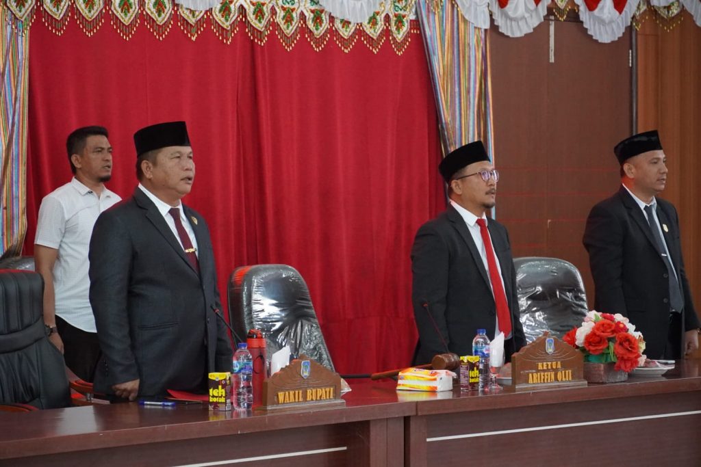 Rapat Paripurna ini pimpin langsung oleh Ketua DPRD Bolsel, Ir Arifin Olii yang didamping Wakil Ketua Salman Mokoagow, serta diikuti oleh Wakil Bupati Bolsel, Deddy Abdul Hamid, para Anggota Fraksi di DPRD setempat.