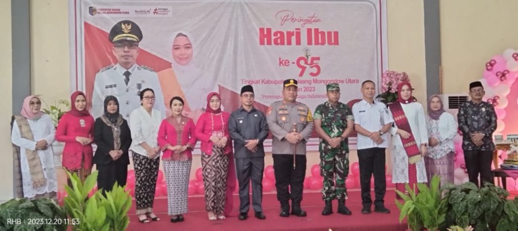 e-berita.com, Bolmut – Pemerintah Kabupaten (Pemkab) Bolaang Mongondow Utara (Bolmut) peringati hari ibu Ke- 95 Tahun. Kegiatan ini dipusatkan di Gedung Dharma Wanita, kawasan Objek wisata pantai Pinagut, Desa Boroko Timur, Kecamatan Kaidipang, Rabu (20/12/2023).