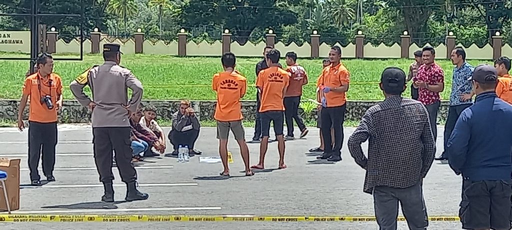 Reka ulang kejadian tersebut, dilaksanakan di halaman Kantor Kepolisian Resor (Polres), dan di pimpin oleh Wakapolres, Kompol Abdul Rahman Faudji SH, MH, Kamis (11/01/2024).