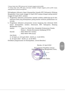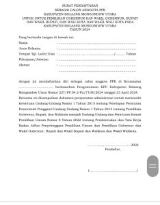 Berikut Surat Pengumuman Perekrutan PPK Pilkada Tahun 2024 yang diterbitkan KPU Bolmut :