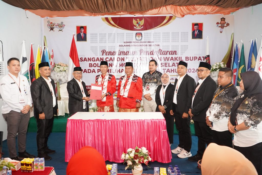 e-berita.com, Bolsel – Dikawal para pimpinan Parpol pengusung, tokoh masyarakat dan ribuan simpatisan, pasangan Cabup-Cawabup Bolsel, Iskandar Kamaru dan Deddy Abdul Hamid (BERKAH) jilid II resmi mendaftar di KPU Kabupaten Bolsel, Kamis (29/08/2024)