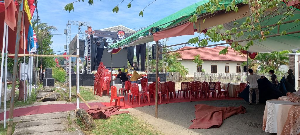 Dari pantauan media ini, untuk lokasi pelaksanaan tahapan pengundian nomor urut Paslon dan deklarasi Pilkada damai 2024, bertempat di halaman kantor KPU Bolsel sedang dalam proses persiapan oleh pihak event organizer. (rdk)