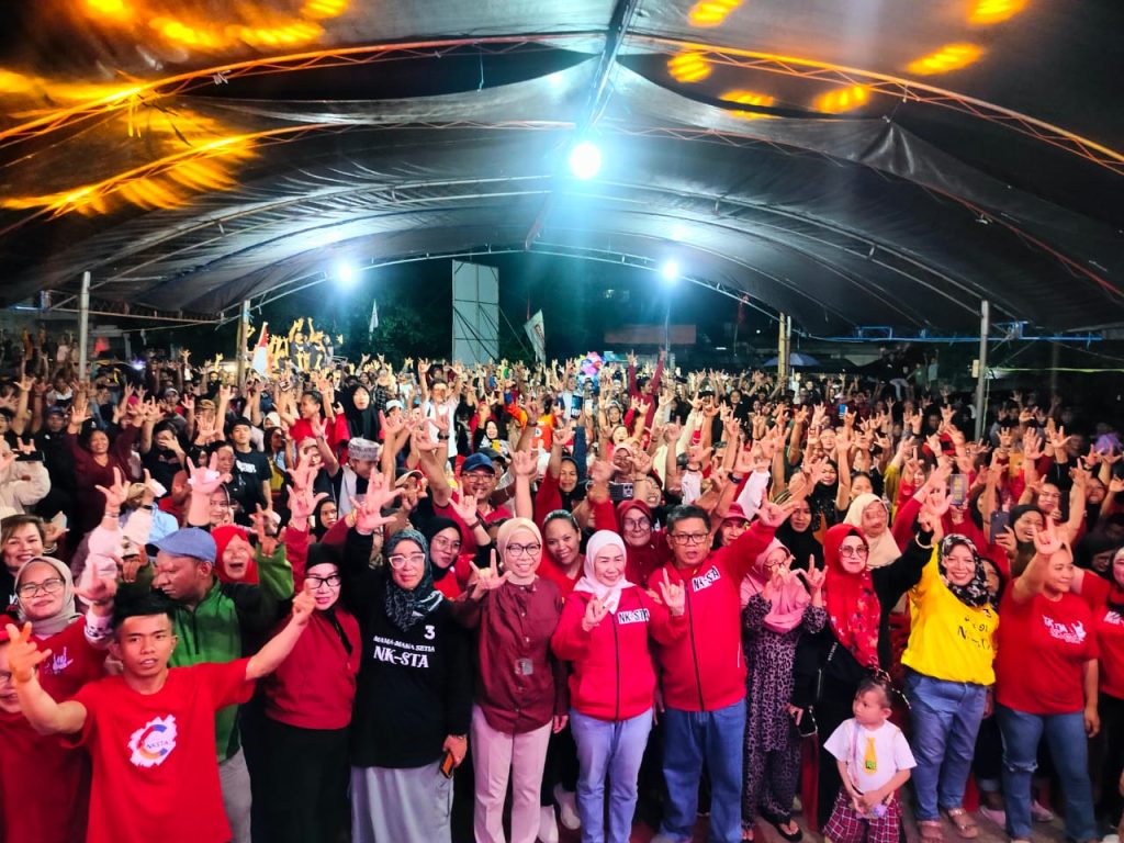 Terbukti, ratusan massa simpatisan pasangan nomor urut 2 ini memadati lokasi Kampanye. Apalagi disaat YSM bersama NK-STA tiba dilokasi, antusias masyarakat makin menggebuh gebu seraya meneriakan yel-yel penuh semangat.