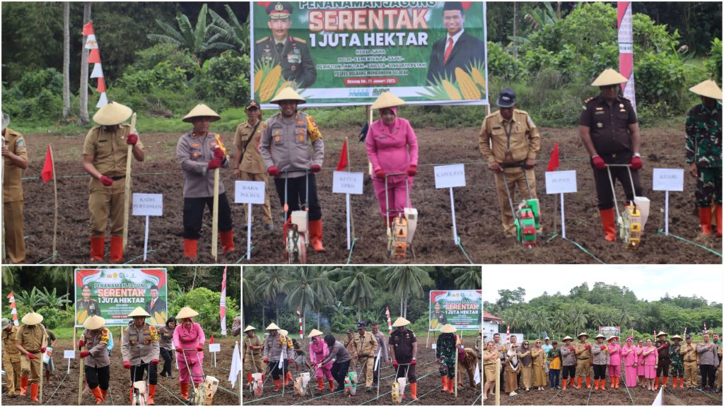 e-berita.com, Bolsel – Dalam upaya mendukung program ketahanan pangan nasional, Polres Bolmong Selatan menggelar kegiatan Penanaman Jagung Serentak 1 Juta Hektar di lahan seluas 1,5 Hektar, pada Selasa (21/01/2025)
