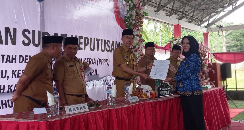 “SK kalian terhitung mulai 1 Oktober 2025 ini, dan saat ini pihak BKPSDM tengah memperoses data kalian ke KemenPAN-RB. Jadi diharapkan juga kerjasamanya dari kalian (P3K),” kata Bupati.