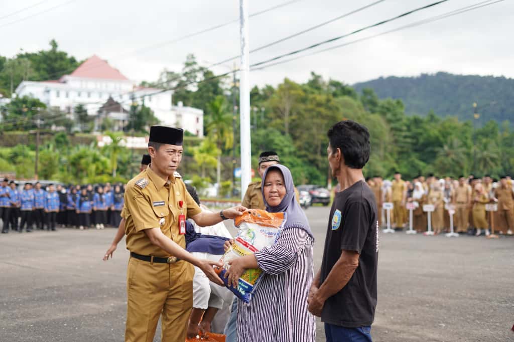 Penyerahan bantuan pagan berupa beras CPPD tersebut, dilakulan secara simbolia oleh Bupati Bolsel, Hi. Iskandar Kamaru S.Pt, M.Si kepada sejumlah masyarat yang membutuhkan, seusai menggelar Apel kerja bersama ASN, bertempat di halaman Kantor BKPSDM, di Panango, Senin (22/09/2025)